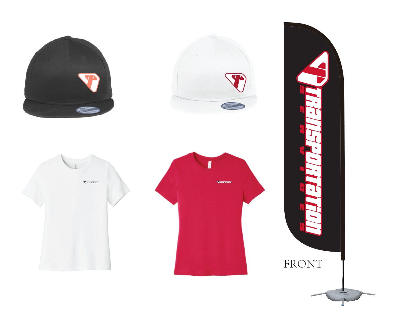 Businesses like Transportation Services want their employees to be identified as team members and look good in doing so. We work closely with ownership to take their clean, recognizable logo and provide various branded color ways that appeal to a wide variety of preferences. This includes embroidered hats, screen-printed t-shirts, and other product offerings. By providing various apparel and products to employees, the business creates not only a team-based environment in the workplace but also brand awareness when these items are worn outside of work.